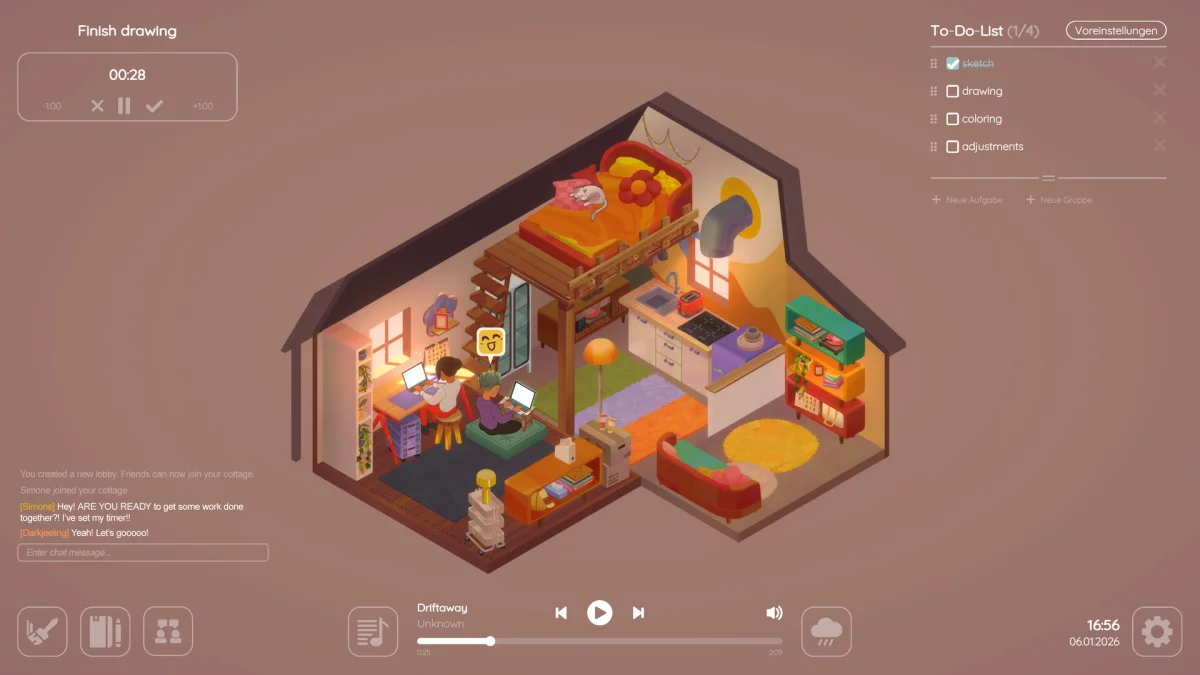 独自学习——或在可自定义的小屋中与朋友一起学习!《Virtual Cottage 2》激励并帮助你完成日常任务。使用内置的生产力工具,更快实现目标。用数百种物品打造你终极舒适的专属空间。